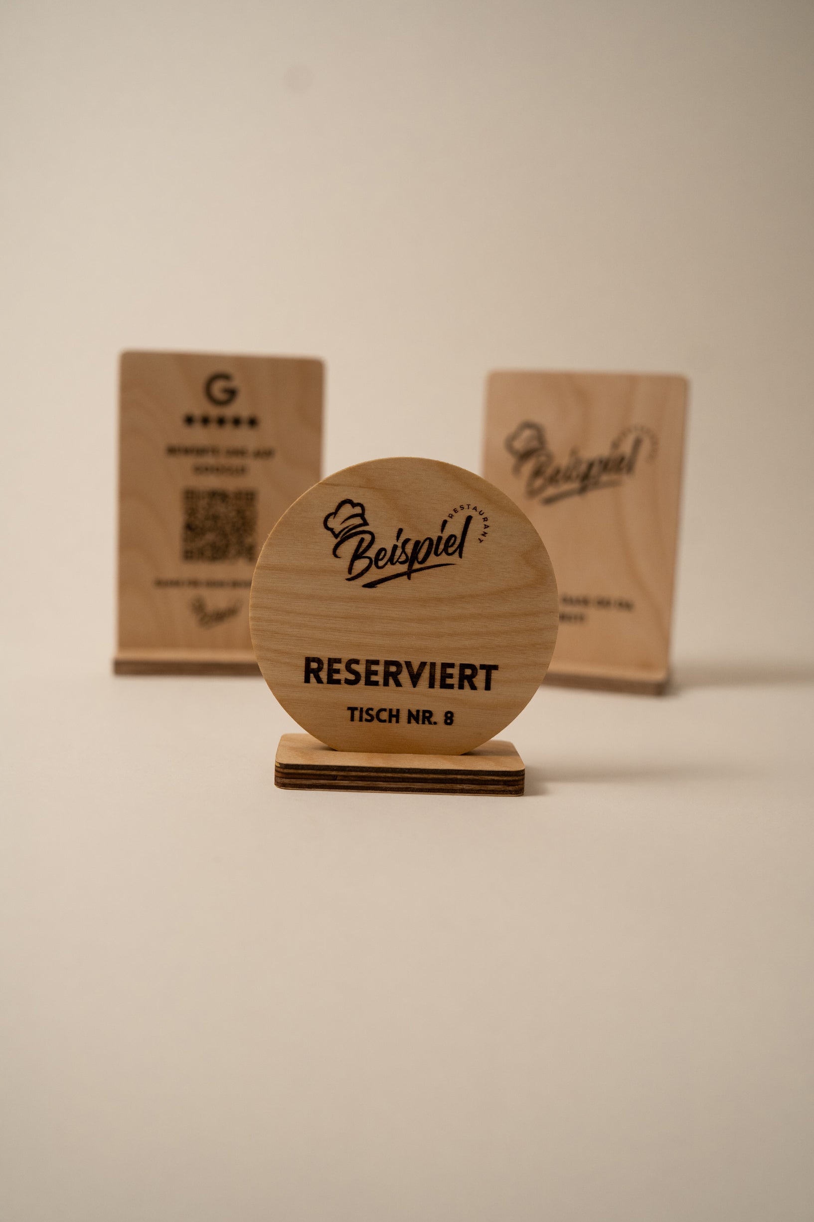 Speisekarten aus Holz, QR Aufsteller für digitale Karten, Bewertungsschilder für Google, Reservierungsschilder, Tisch- und Thekenaufsteller, Untersetzer ...